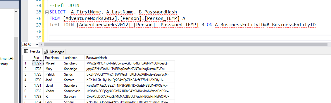 RIGHT TABLE ::[AdventureWorks2012].[Person].[Password_Temp]- 15000 records
