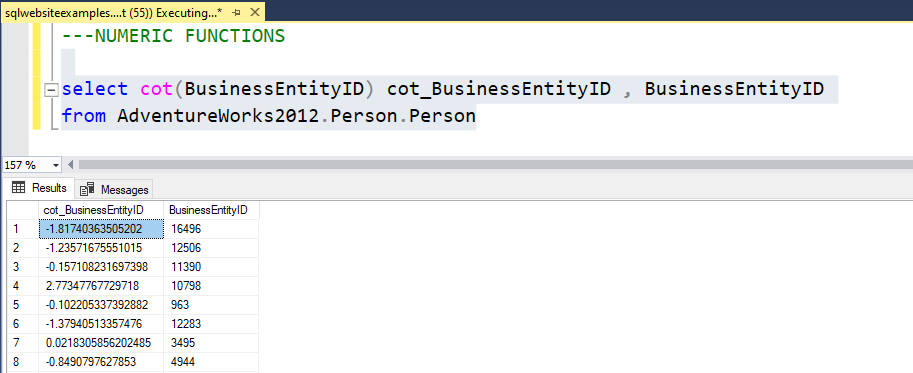 SQL COT() Function